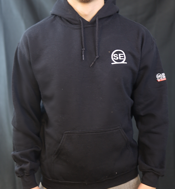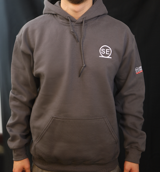 8 oz., 50% USA cotton, 50% polyester; Heather Sport colors: 60% polyester, 40% cotton; Made with 50% sustainably and fairly grown USA cotton;Pill-resistant air jet yarn; Double-needle stitching throughout; Double-lined hood; Pouch pocket; matching drawcord; 1×1 ribbed cuffs and waistband with spandex. Samuel Engineering Shin on left chest with Samuel Engineering logo on left shoulder.